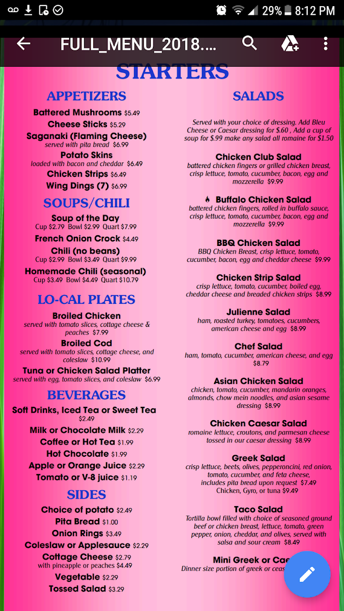Flamingo Family Restaurant Menu